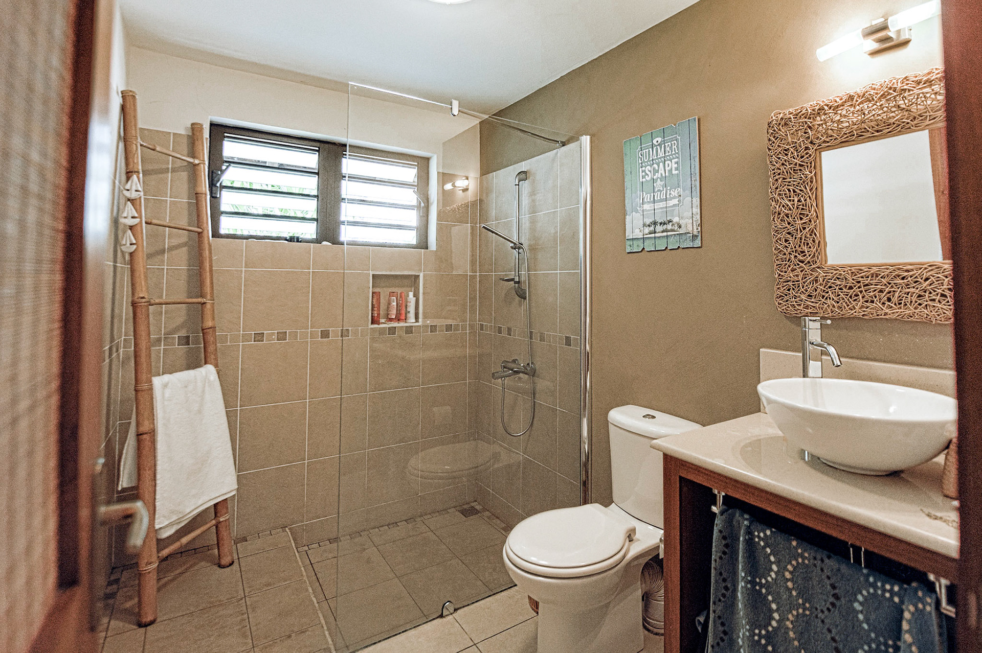Located in Poste Lafayette. this four bedroom villa accommodates up to eight people and two babies. it offers gardens, terraces, a beautiful sea view, and direct access to the beach and salt water infinity pool.