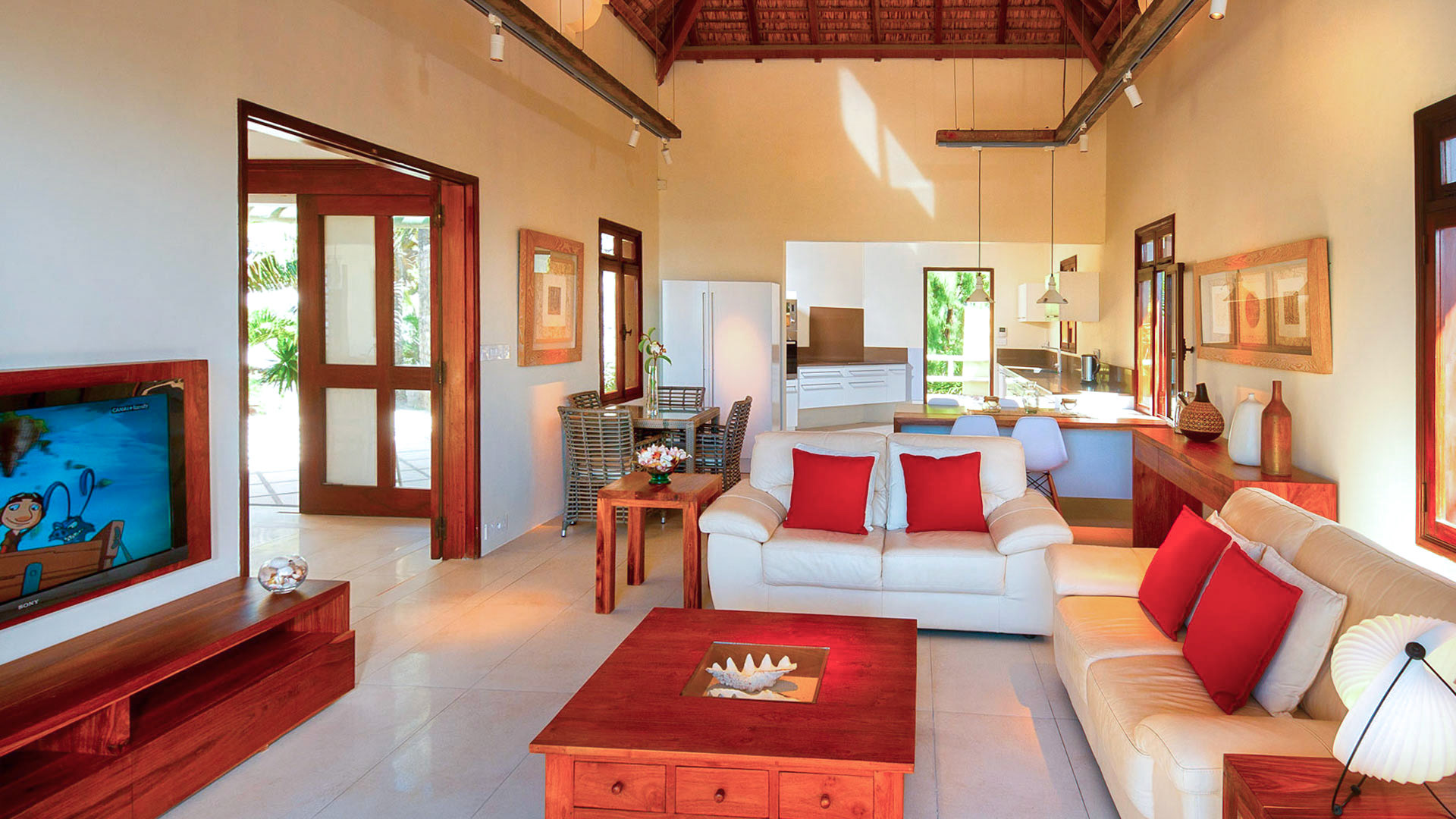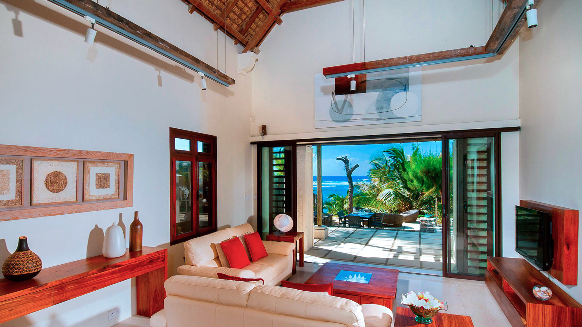 Luxury beach villa in Poste Lafayette, newly built, 3 bedrooms (6 adults and 2 children), private pool, terrace with outstanding views, fully staffed with maid and cook. This lovely villa is in Poste Lafayette on the North East coast of Mauritius. The villa is directly on one beautiful beach of Mauritius. This newly built contemporary beach villa features a private swimming pool and a fully equipped kitchen. The building is in basalt stone, wood (oak) and straw (straw cane sugar). Bedrooms Room 1 Room, Ground level. This bedroom has 2 twin beds. Bathroom shared, with shower. WC in the bathroom. This bedroom includes also air conditioning. Room 2 Room, Ground level. This bedroom has 2 twin beds. Bathroom shared, with shower. WC in the bathroom. This bedroom includes also air conditioning. Room 3 Master bedroom, 1st floor. This bedroom has 1 double bed King size. Bathroom shared, with shower. WC in the bathroom. This bedroom includes also air conditioning. Indoors The villa features three bedrooms, a mezzanine corner with Smart TV and 2 sofa beds where 2 children will be able to sleep (bed size 80cm x 190cm), two 32 inch LCD flat screen satellite TVs (1 on the mezzanine corner, the other in the A/C master bedroom upstairs). A lovely and bright living room as well as a fully equipped kitchen (plan your capsules for the Nespresso machine) Outdoors There is a 3m x 6m swimming pool with wide balao deck and direct access to the beach. Pool can be secured upon request. You can enjoy your meals outside thanks to the 3 lounges, 3 dining areas (front and back covered terraces and interior dining area) and tables with 8 seats. For the night, the villa features an ambient lighting, controlled by professional 'dimming system' by Dynalite.