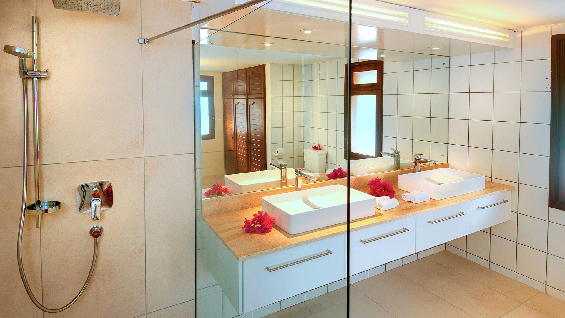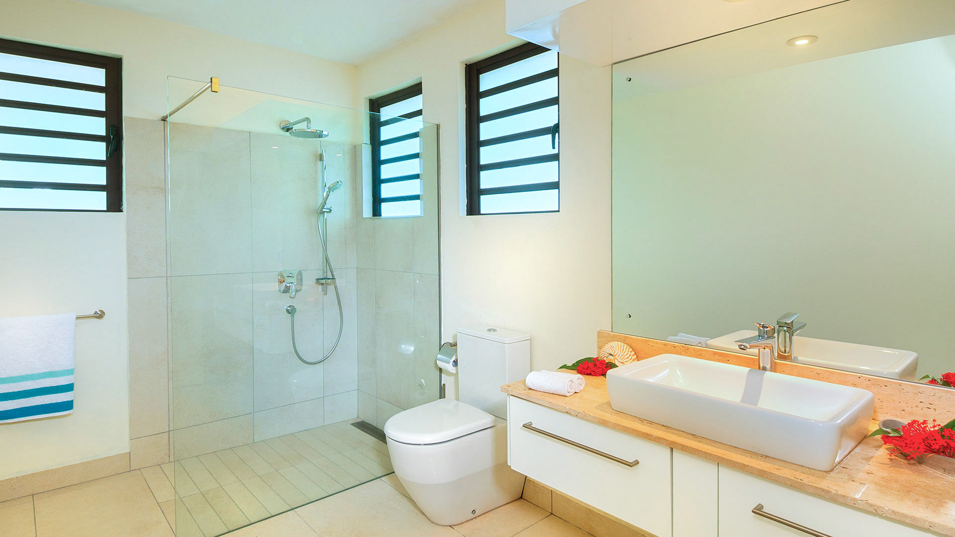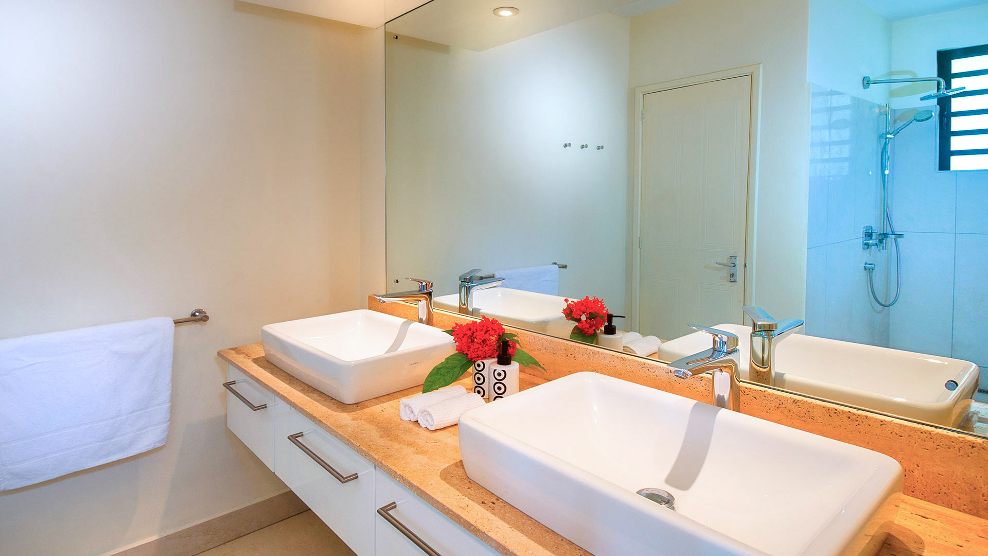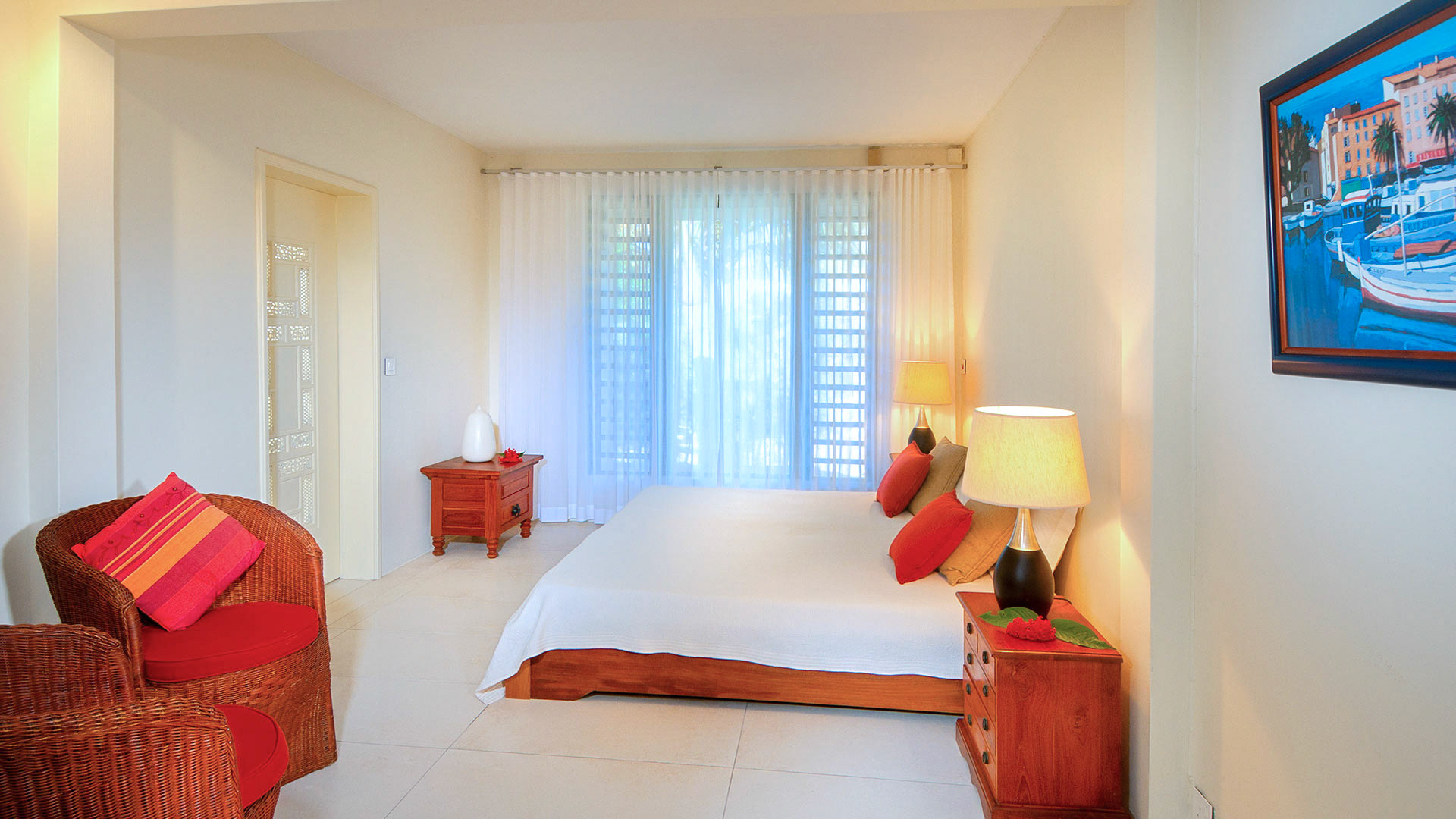 Beautiful apartment located in Grand Bay, north of Mauritius, with 3 bedrooms and 3 bathrooms. Amazing sea view, shared outdoor pool and direct access to the beach. The apartment located on the seafront in Grand Bay, one of the most beautiful sites of the island. This 230 sqare meters flat is on the first floor of a small exclusive residence with an exceptional view of the ocean and the northern islands. With it three bedrooms, this home can accommodate up to six people and has also a magnificent terrace with a breathtaking view, a shared outdoor swimming pool and a direct access to the beach. Bedrooms Room 1 Room. This bedroom has 1 double bed. Bathroom ensuite, with walk-in shower. WC in the bathroom. This bedroom includes also air conditioning, dressing room. Room 2 Room. This bedroom has 1 double bed. Bathroom ensuite, with walk-in shower. WC in the bathroom. This bedroom includes also air conditioning, TV, dressing room. Room 3 Room. This bedroom has 1 twin beds. Bathroom ensuite, with walk-in shower. This bedroom includes also air conditioning, dressing room. Indoors Located on the 1st floor of the residence, the flat is accessible by a stair and a lift. The furnishings and decor of the apartment Hoani are resolutely contemporary and its volumes offer its guests calm and refinement. The living room of more than 40 square meters, with sea view, includes a TV lounge and a dining area. The modern kitchen is fully equipped. All the bedrooms offer a beautiful sea view and have quality bedding, their own bathroom, air conditioning and Wi-Fi. Outdoors​ The large terrace has a comfortable and spacious sitting area and a dining area for up to eight persons. Guests of the apartment Hoani will also be able to enjoy the large infinity pool (15 x 3 meters) of the residence, shared between three flats. The pool offers a wonderful view and has a relaxing area, parasols, sunbeds and an outdoor shower. The residence has also a direct access to the beach and two private parking spaces. Staff & Services A four-hour daily housekeeping service is included, from 9am to 1pm (except Sundays and public holidays). Location Ideally located in Grand Bay, the flat is close to all the principal amenities and has a direct access to the beach. The Mont Choisy Golf Course is only 15 minutes away and the Belle Mare Legend & Links is 40 minutes away.