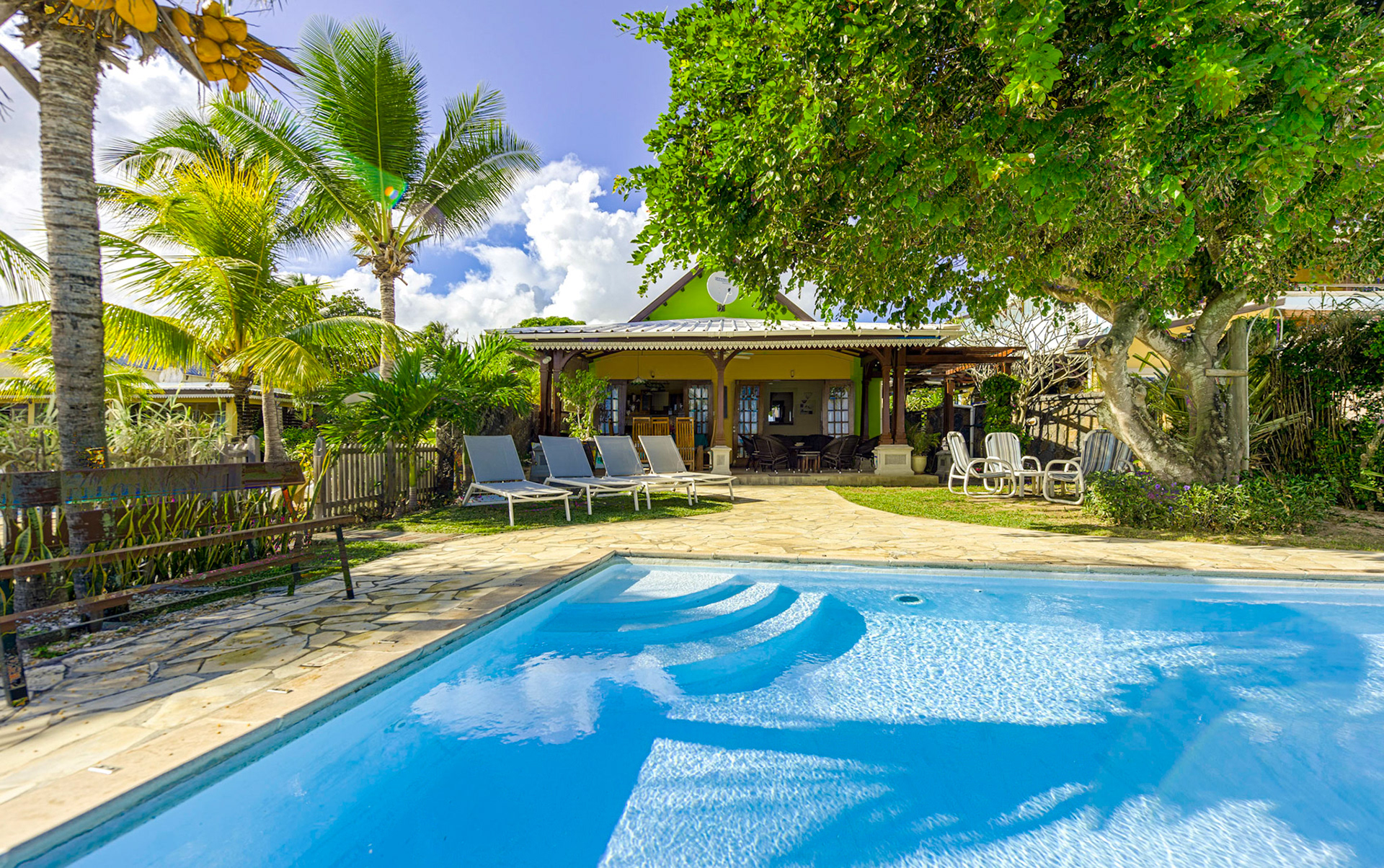 Located in Poste Lafayette. this four bedroom villa accommodates up to eight people and two babies. it offers gardens, terraces, a beautiful sea view, and direct access to the beach and salt water infinity pool.
