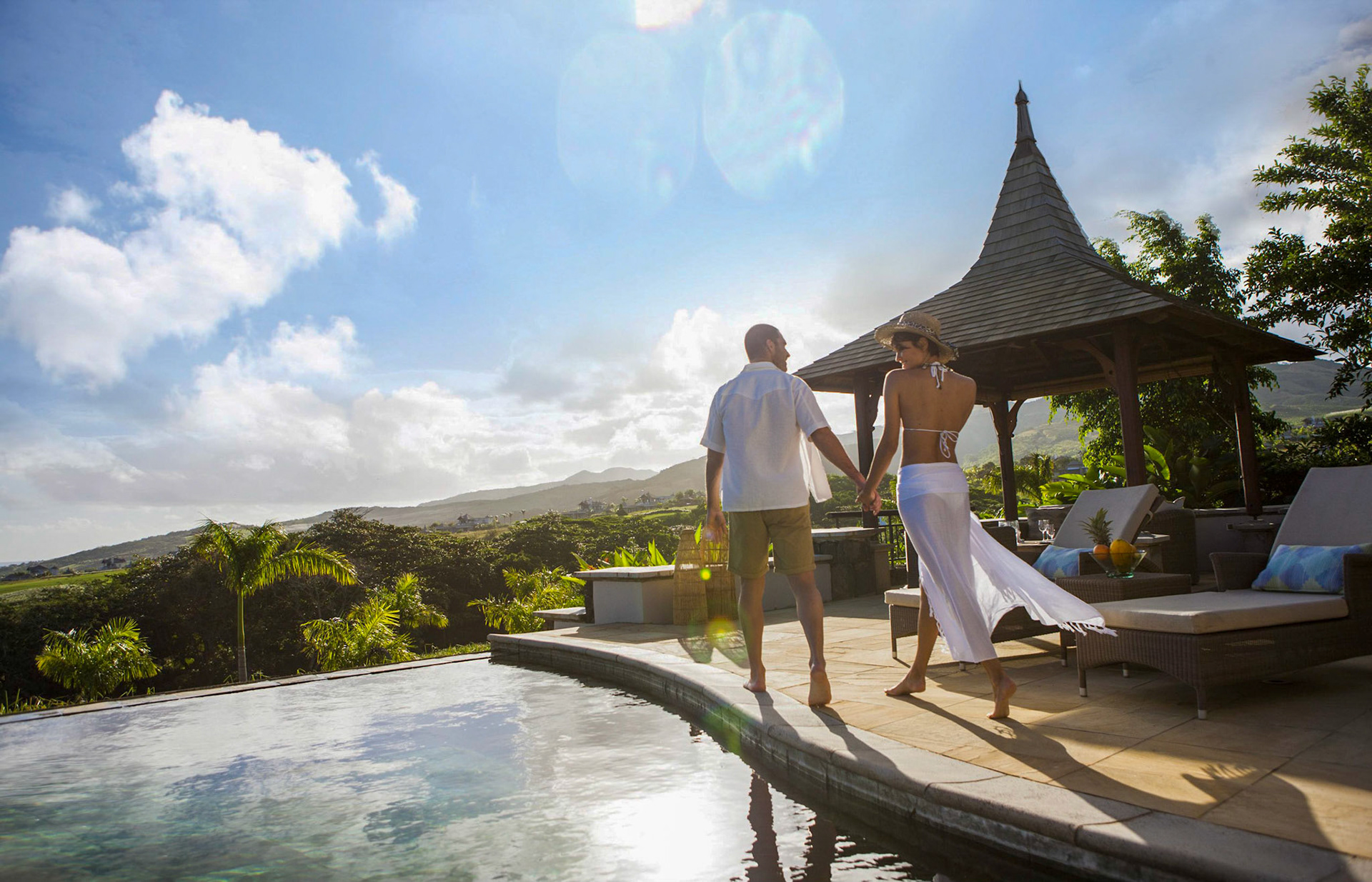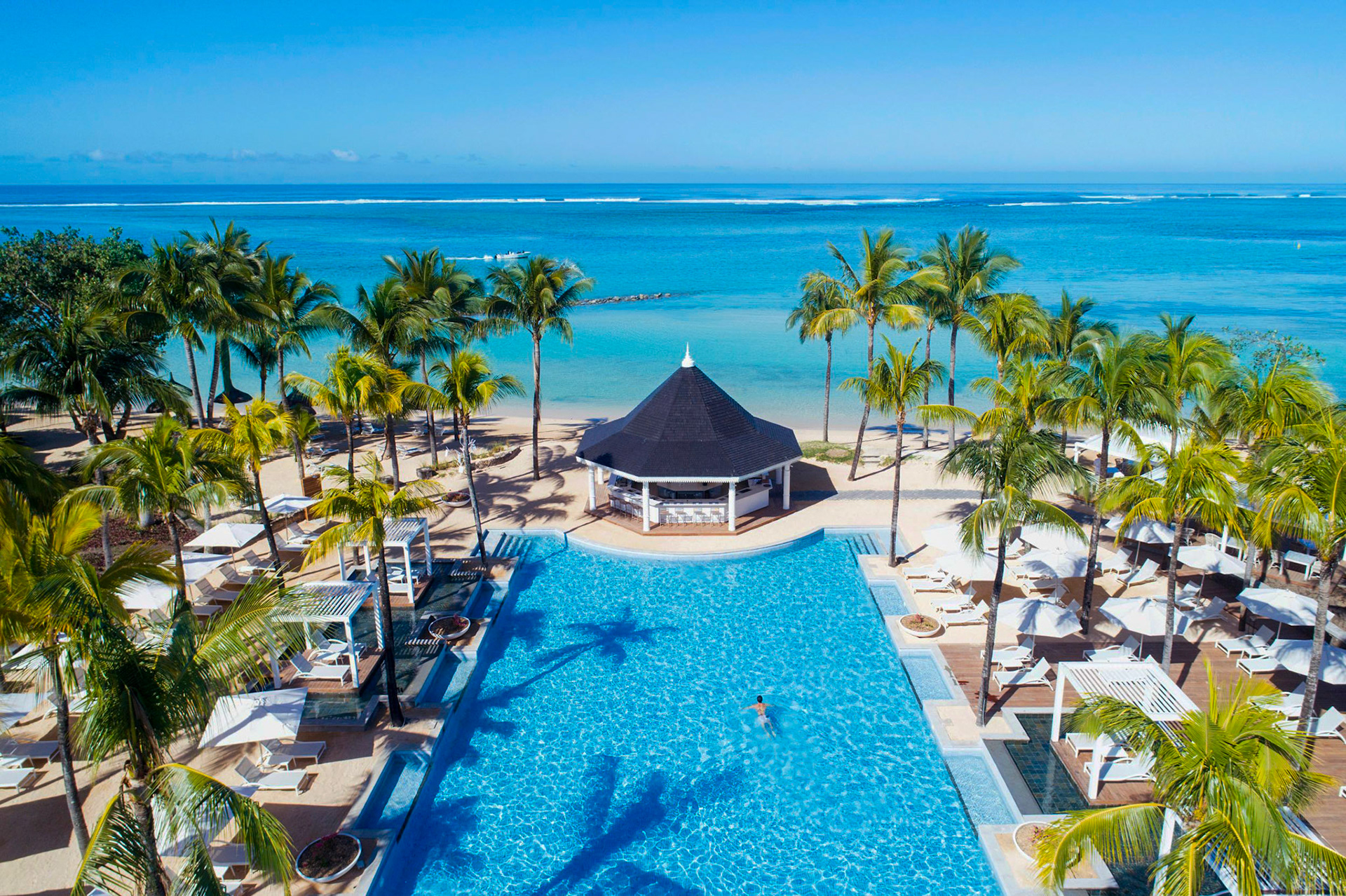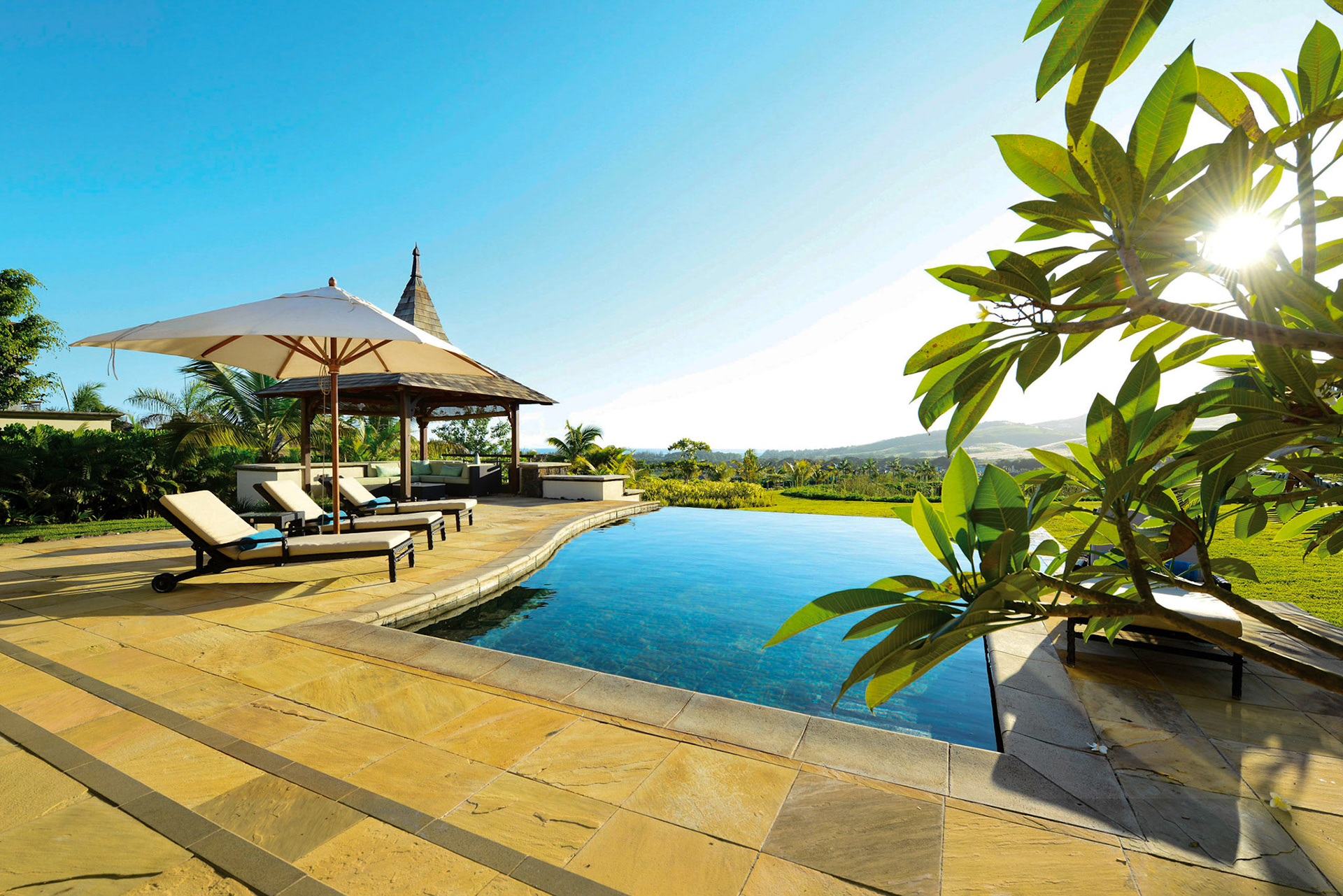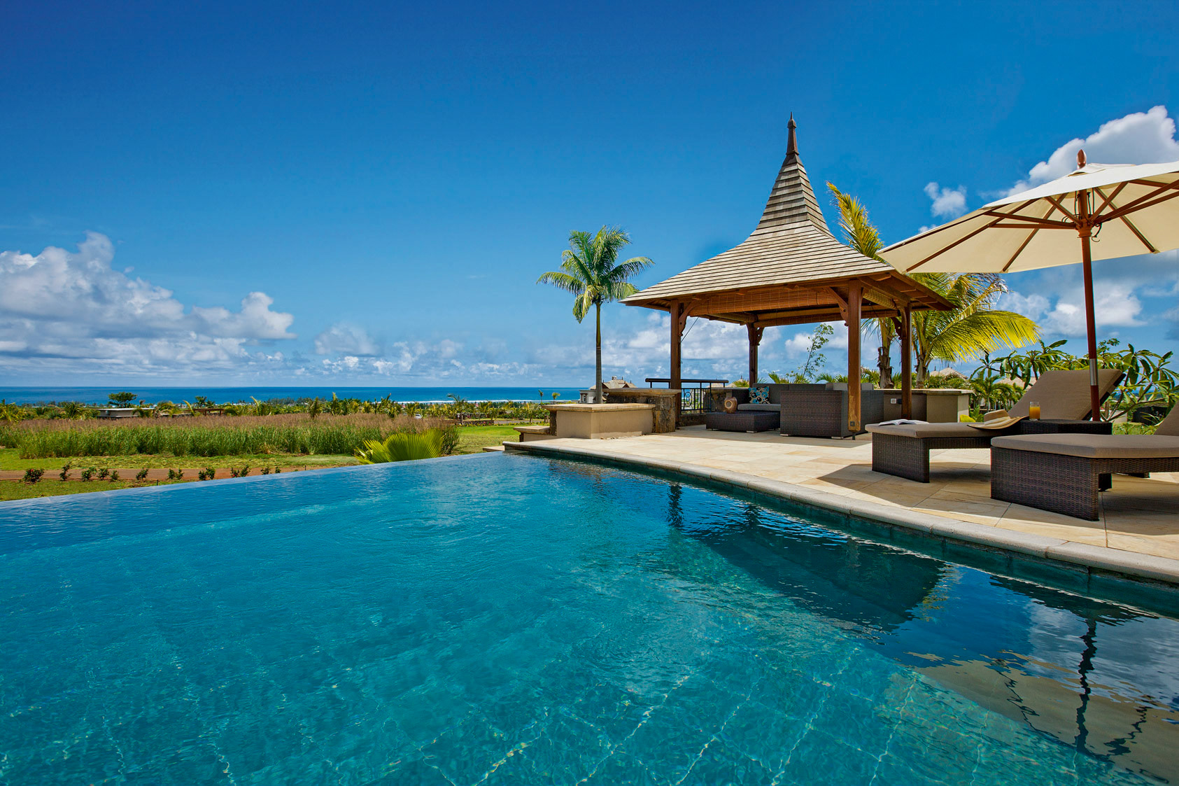 Magnificent villa located on the West Coast of Mauritius in the luxury golf estate, 5 bedrooms with bathrooms, private pool, large garden with bar, petanque, fitness room