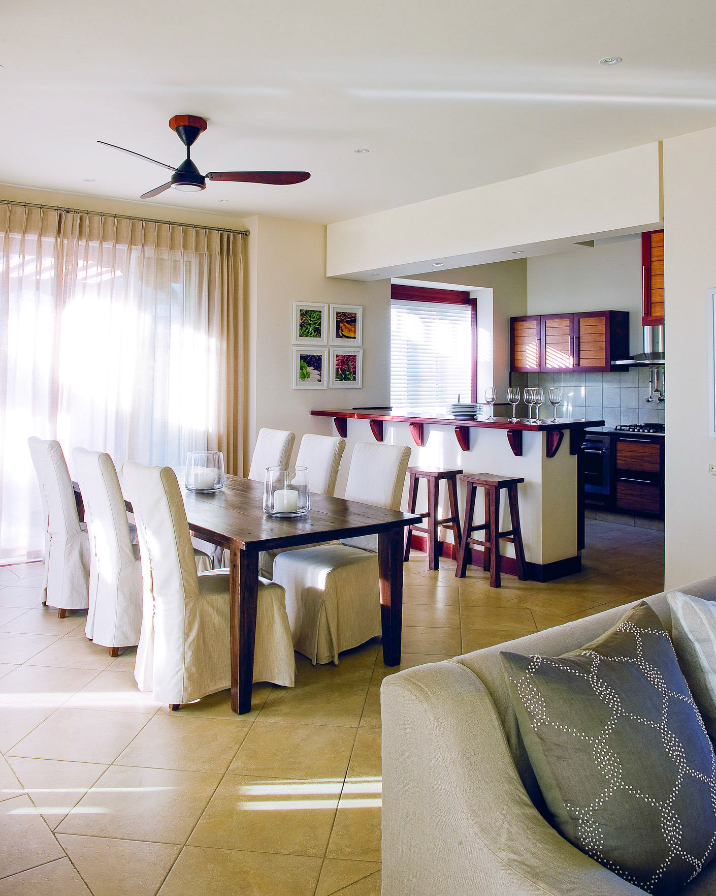 Superbly decorated, the villa is spacious, bright, modern and very airy. You will find a fully equipped kitchen, a living / dining room with table for 8 people, television and access to the terrace.