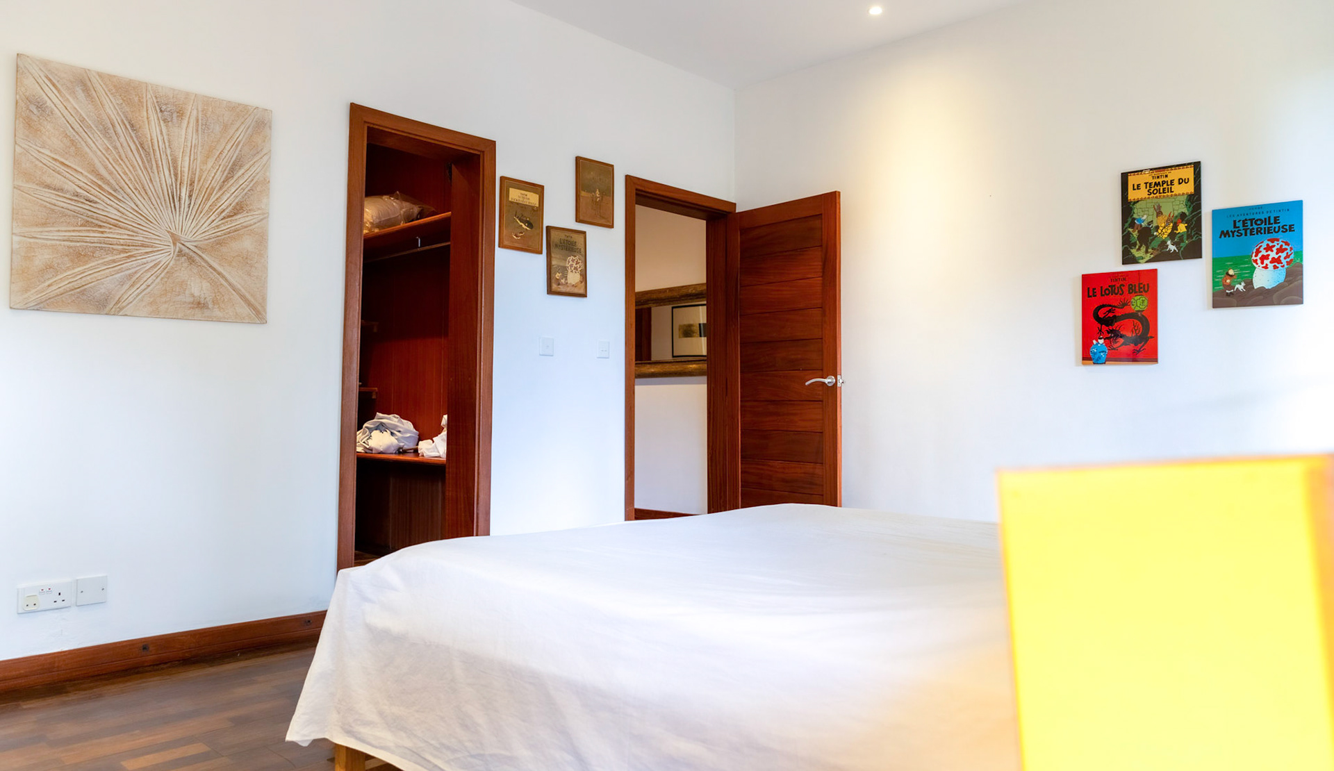 Childrens bedroom: First floor, pool and sea facing, 19 square metres plus mezzanine 10 square metres, four single beds 90 x 190, wardrobe, ensuite bathroom 10 square metres with double wash basin and toilet. Hair dryer available, towels and soap supplied.