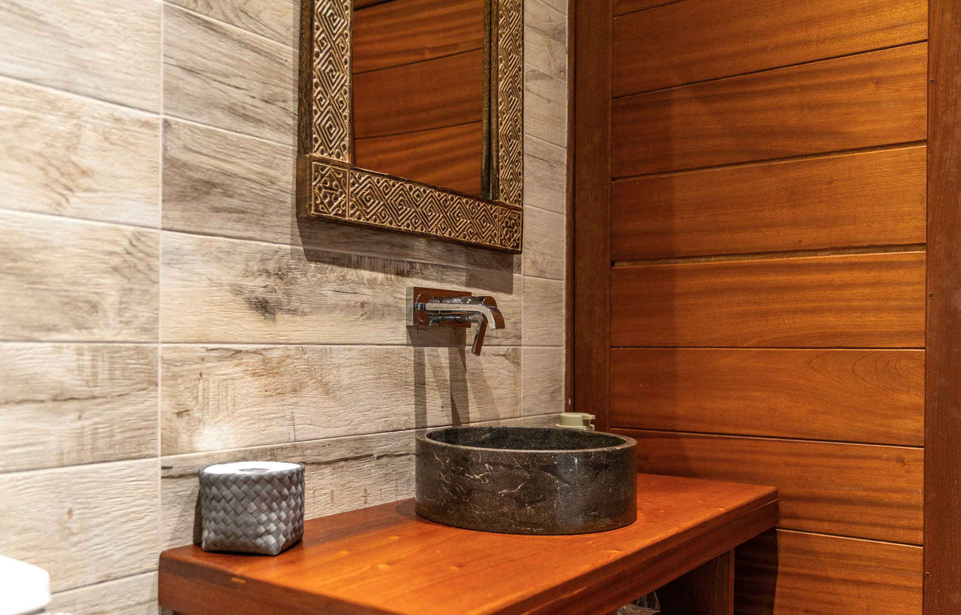 On the first floor the second bedroom (25sqm) with double bed 180 x 200, wardrobes, TV, DVD and mini bar plus an additional dressing, ensuite double bathroom with shower, hair dryer and independent toilet (18sqm) offers plenty of space and a magnificent view of the beach and lagoon.