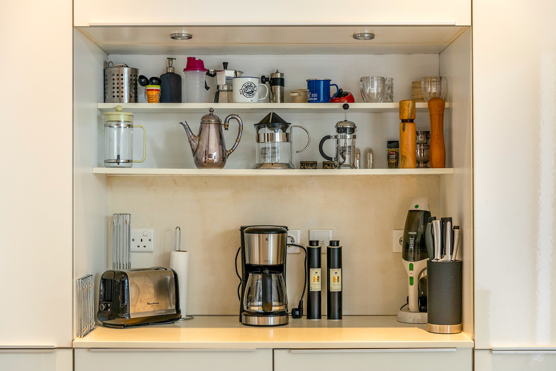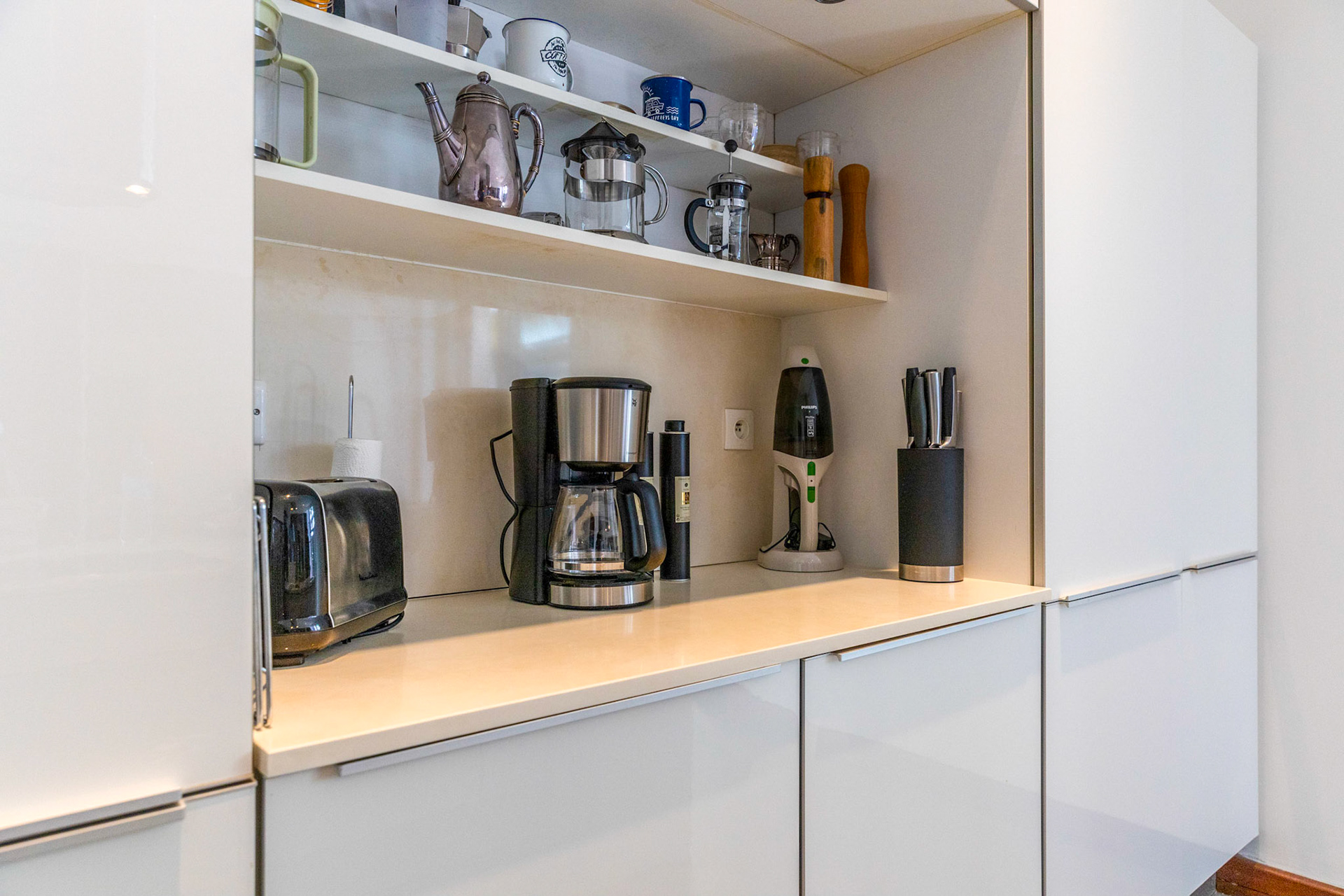 The kitchen is fully equipped with double door fridge, wine cellar, electric oven, gas cooker, dishwasher, microwave, toaster, coffee machine and all necessary mixers and utensils plus a barbecue for eight persons.