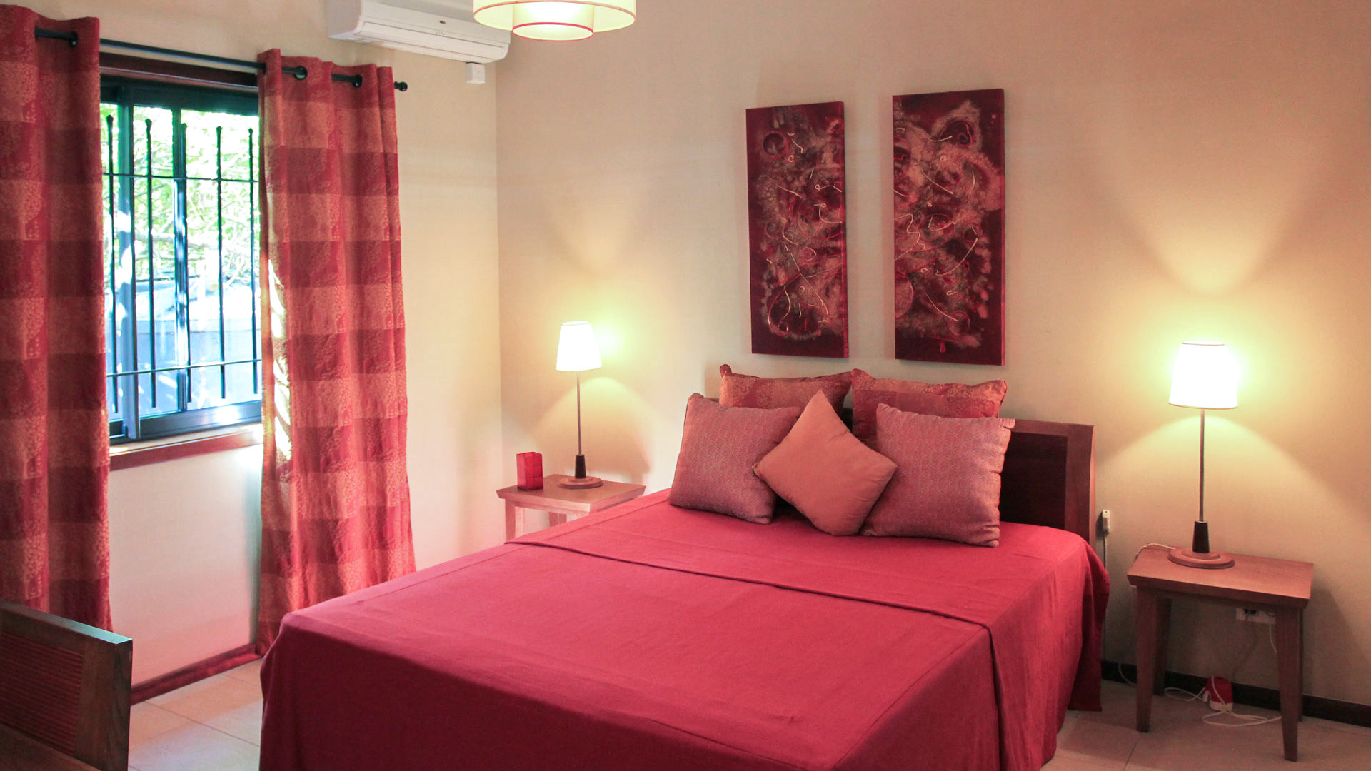 Room, At apartment level, view of the garden. This bedroom has 1 double bed. Bathroom ensuite, with shower. separate WC room. This bedroom includes also air conditioning.