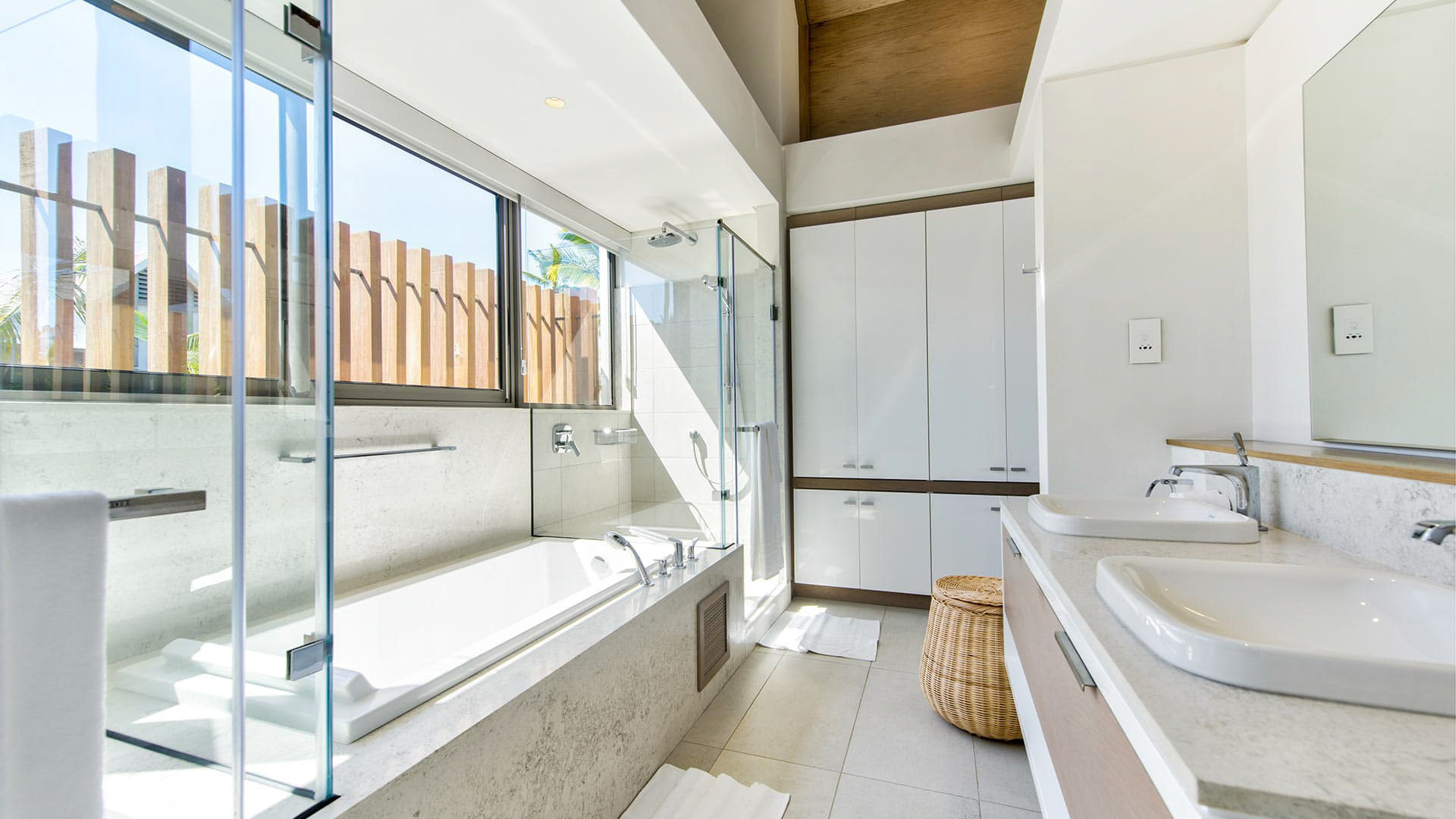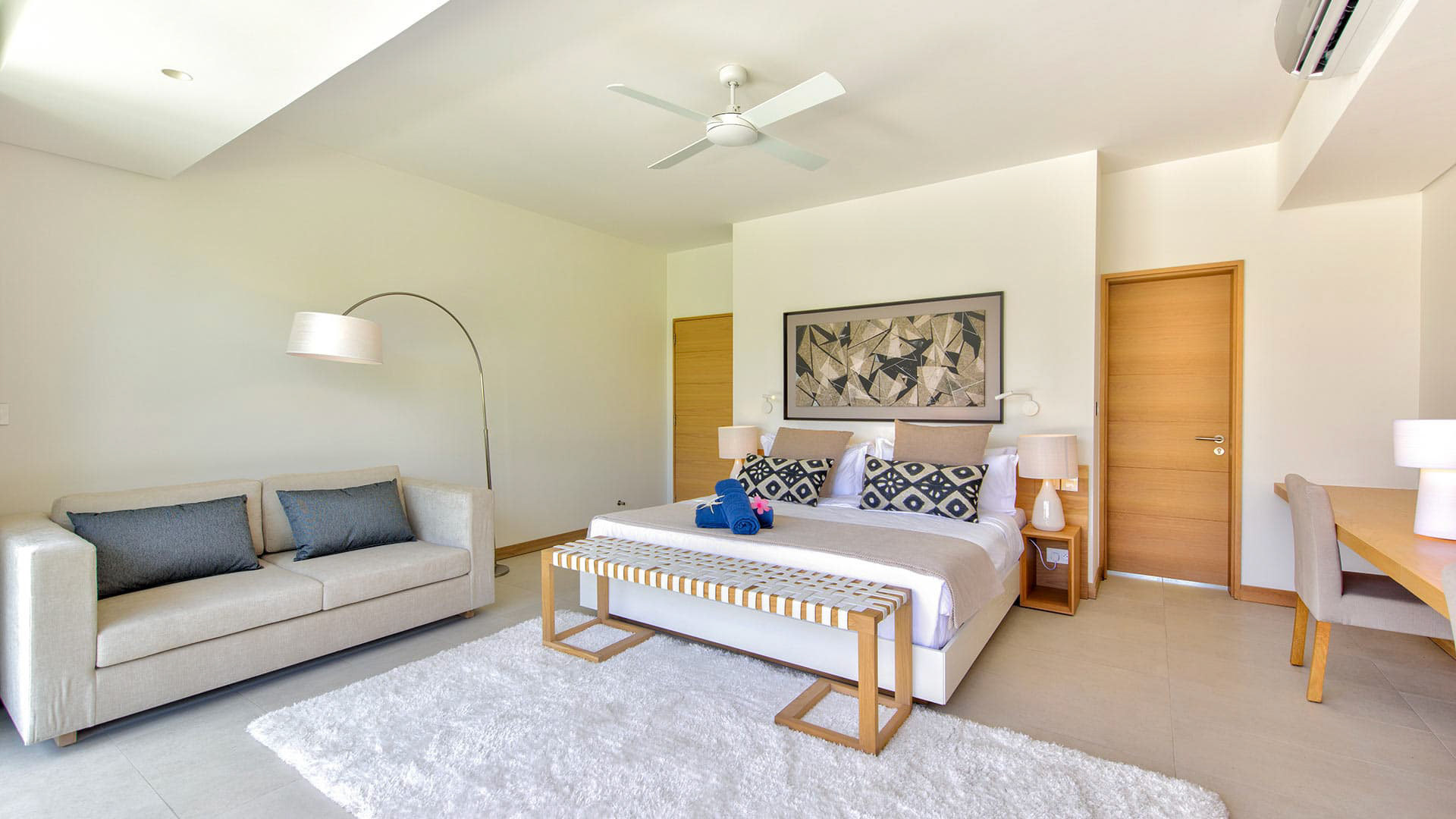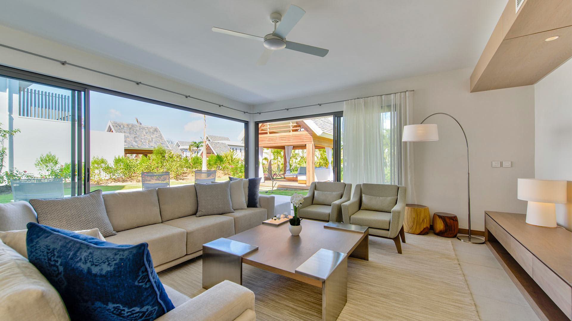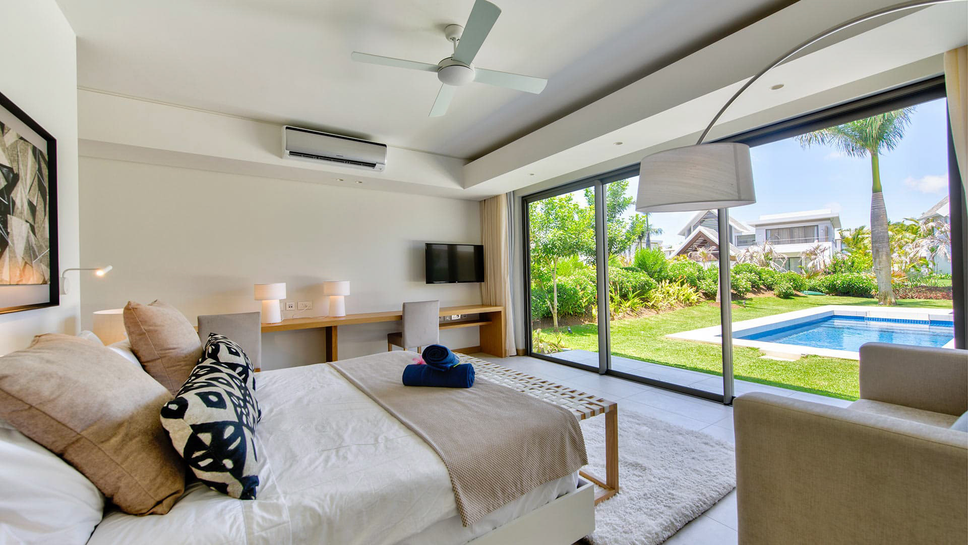 This 180m² Balinese inspired villa is located opposite to the Wolmar estate, on the West coast of Mauritius. Wolmar is a natural reserve of 600 hectares, home to more than 2,500 deer, wild boars, rabbits and monkeys.
