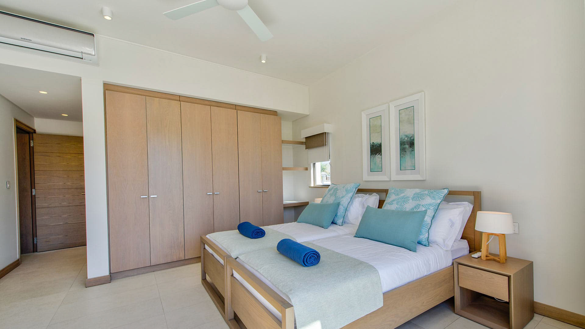 Room, At apartment level. This bedroom has 2 twin beds 90 cm. Bathroom ensuite, with shower. WC in the bathroom. This bedroom includes also air conditioning.